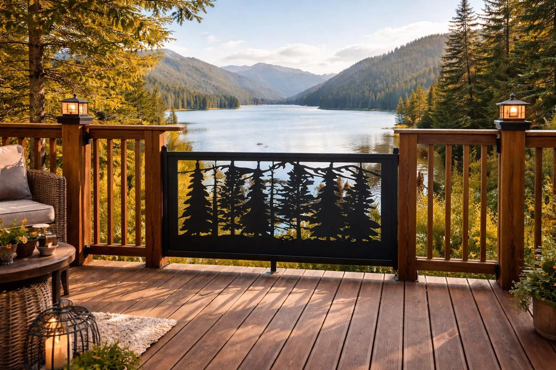 Decorative Tree Metal Panel and Railing Insert- Woodland Pine Canopies