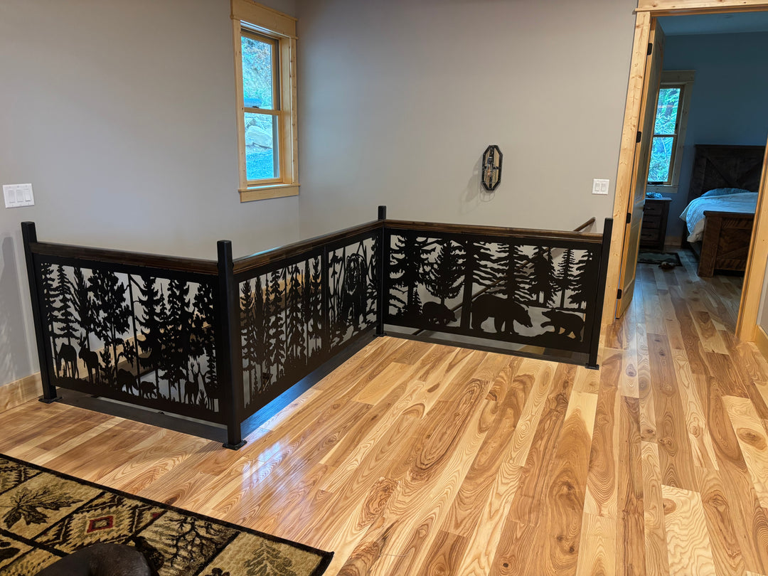 Explore our gallery of decorative metal panels and railing inserts. Discover modern, custom, tree, and geometric designs perfect for indoor and outdoor spaces.